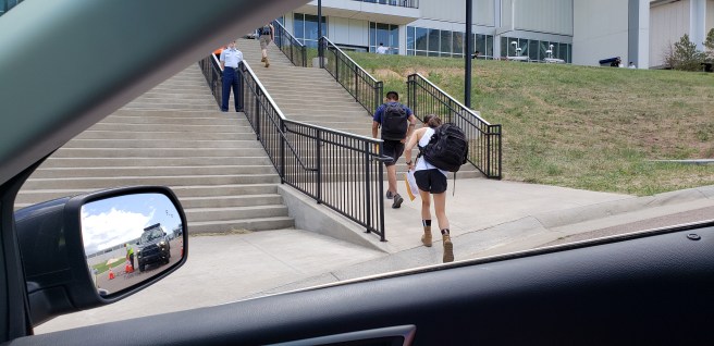 The drop off was about as anti-climactic as expected, a simple stop, drop, and roll. By the way, anyone else find it appropriate that there were some showers after the drop-offs? A few tears from the heavens for the emotional parents, then some sunshine for the future.